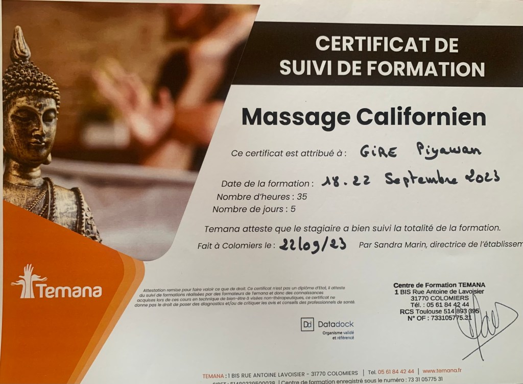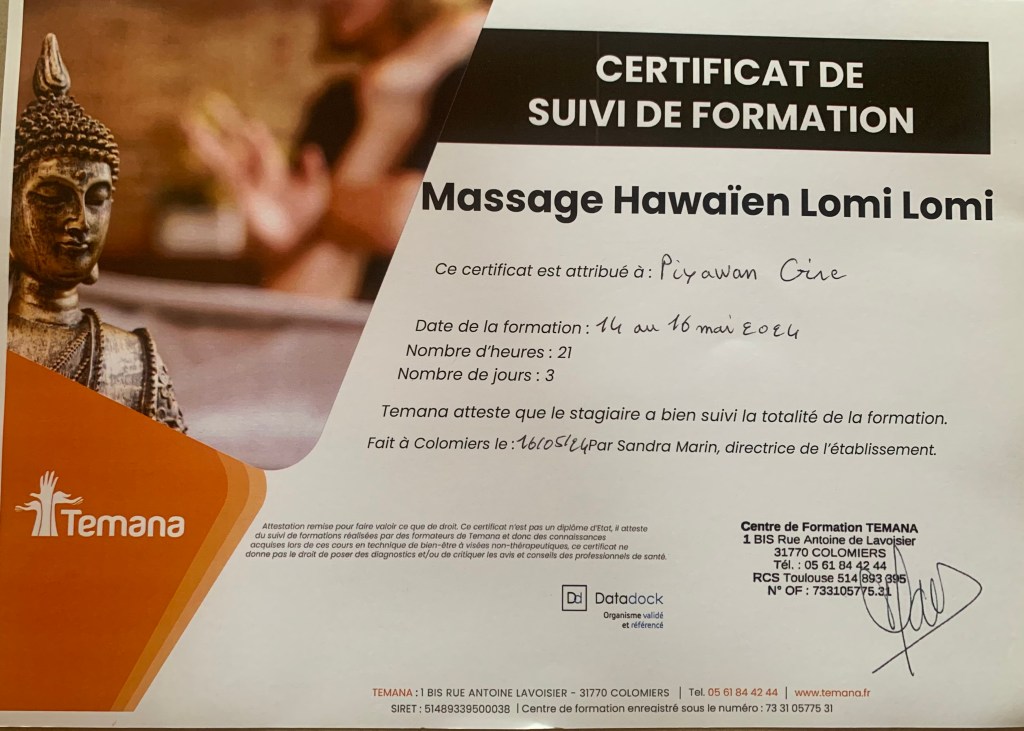 « C’est vraiment très agréable de recevoir un vrai massage par une merveilleuse personne… Très agréable et très professionnel. Un grand merci 🙏🏼🙏🏼🙏🏼 Je reviendrais avec grand plaisir pour prendre soin de mon corps 🥰🥰🥰 Merci merci merci 🙏🏼🙏🏼🙏🏼❤️❤️❤️ »