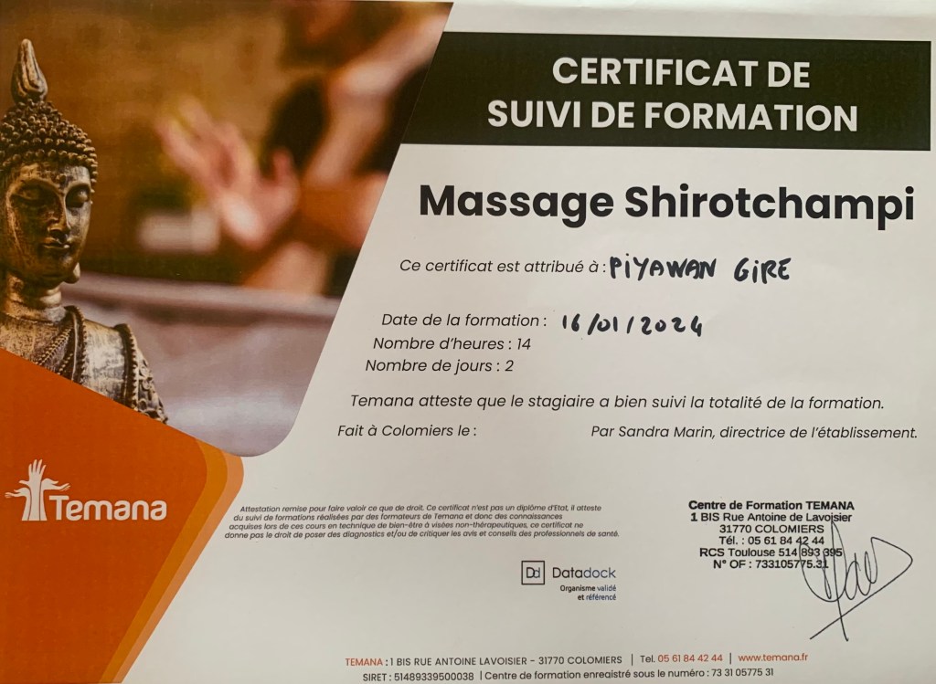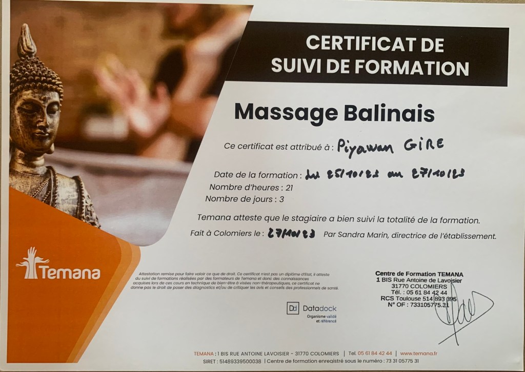 « Une expérience unique, entre thérapie et bien-être. Merci beaucoup, et à très bientôt ! »