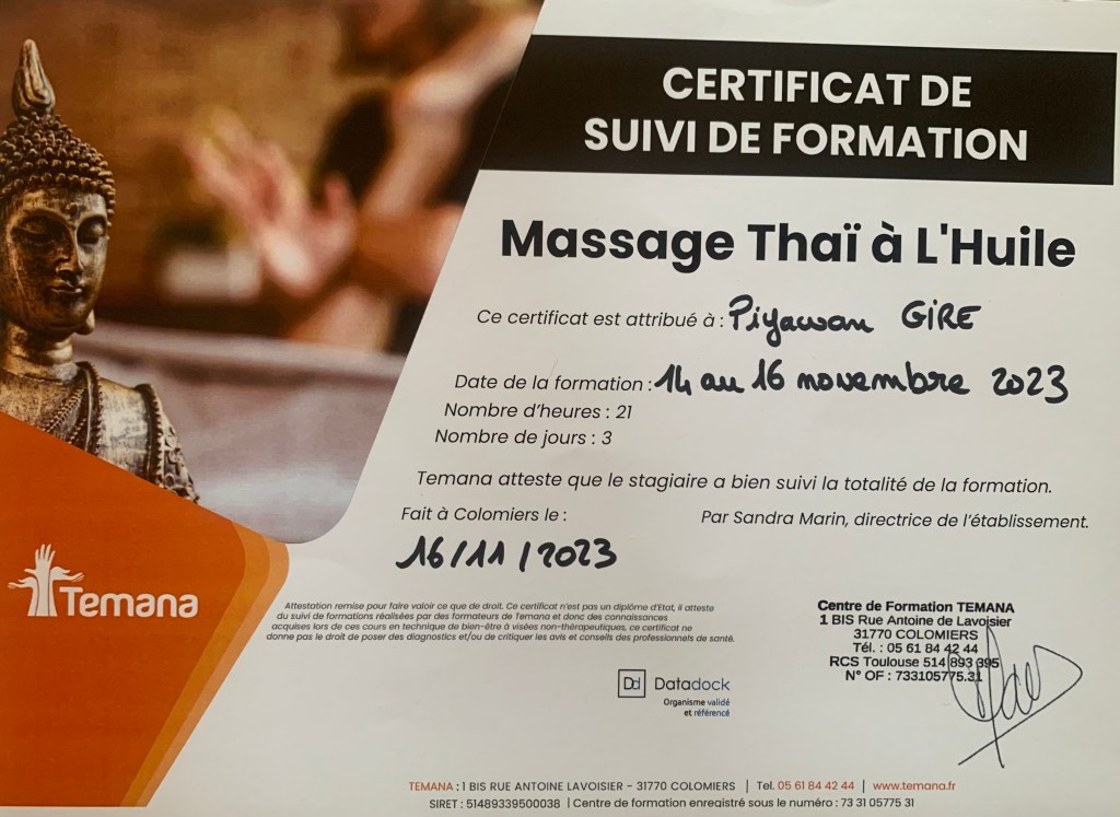Sawatdee ka ! Bienvenue dans le salon de Nidnoi, masseuse thaï professionnelle diplômée.